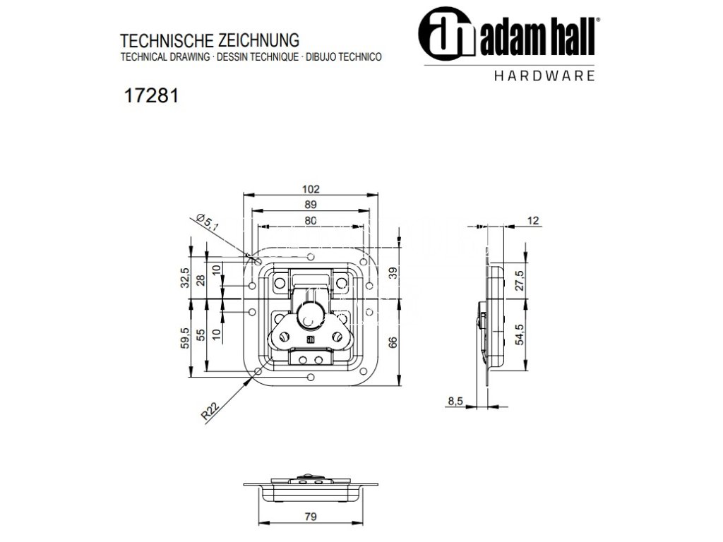 Butterfly Latch střední nezalomená hloubka 12 mm